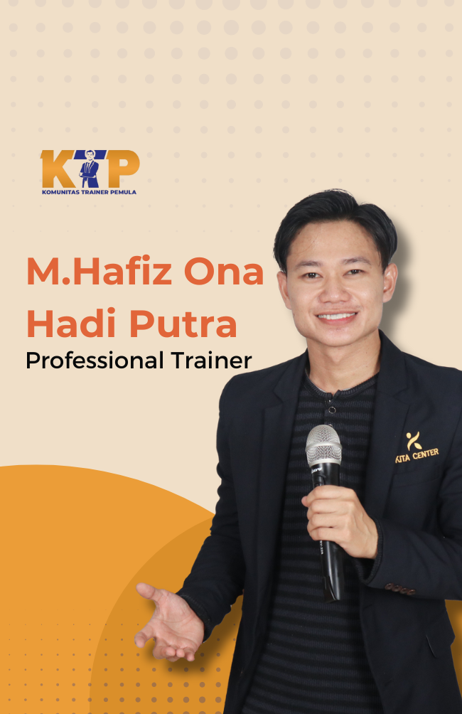 M.Hafiz Ona Hadi Putra adalah seorang Professional Trainer dan Motivator yang telah berpengalaman lebih dari 6 tahun dalam pengembangan SDM, mengisi lebih dari 200 event dengan ribuan alumni dari berbagai daerah yang ada di Indonesia khususnya dalam public speaking, leadership, dan excellent service.